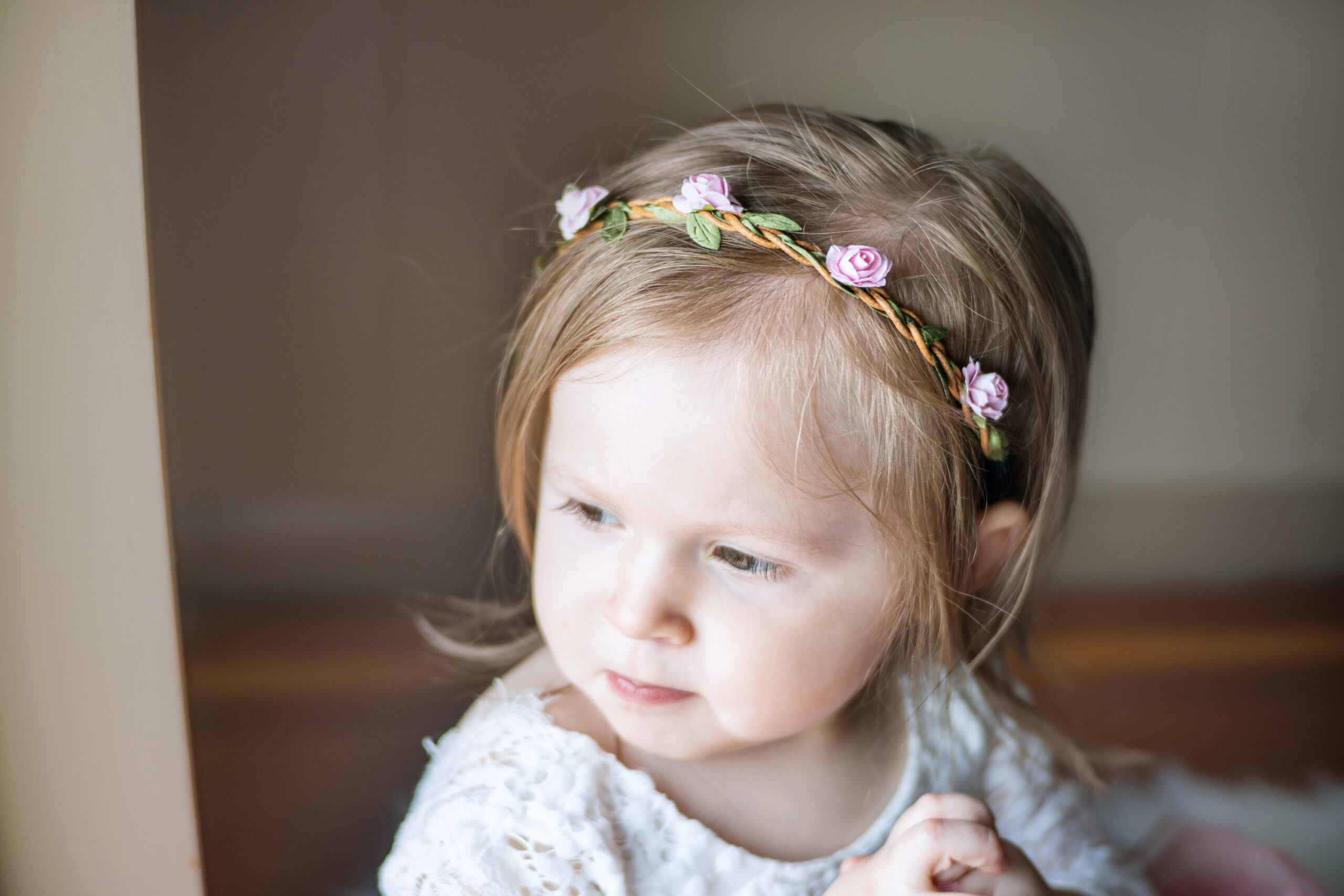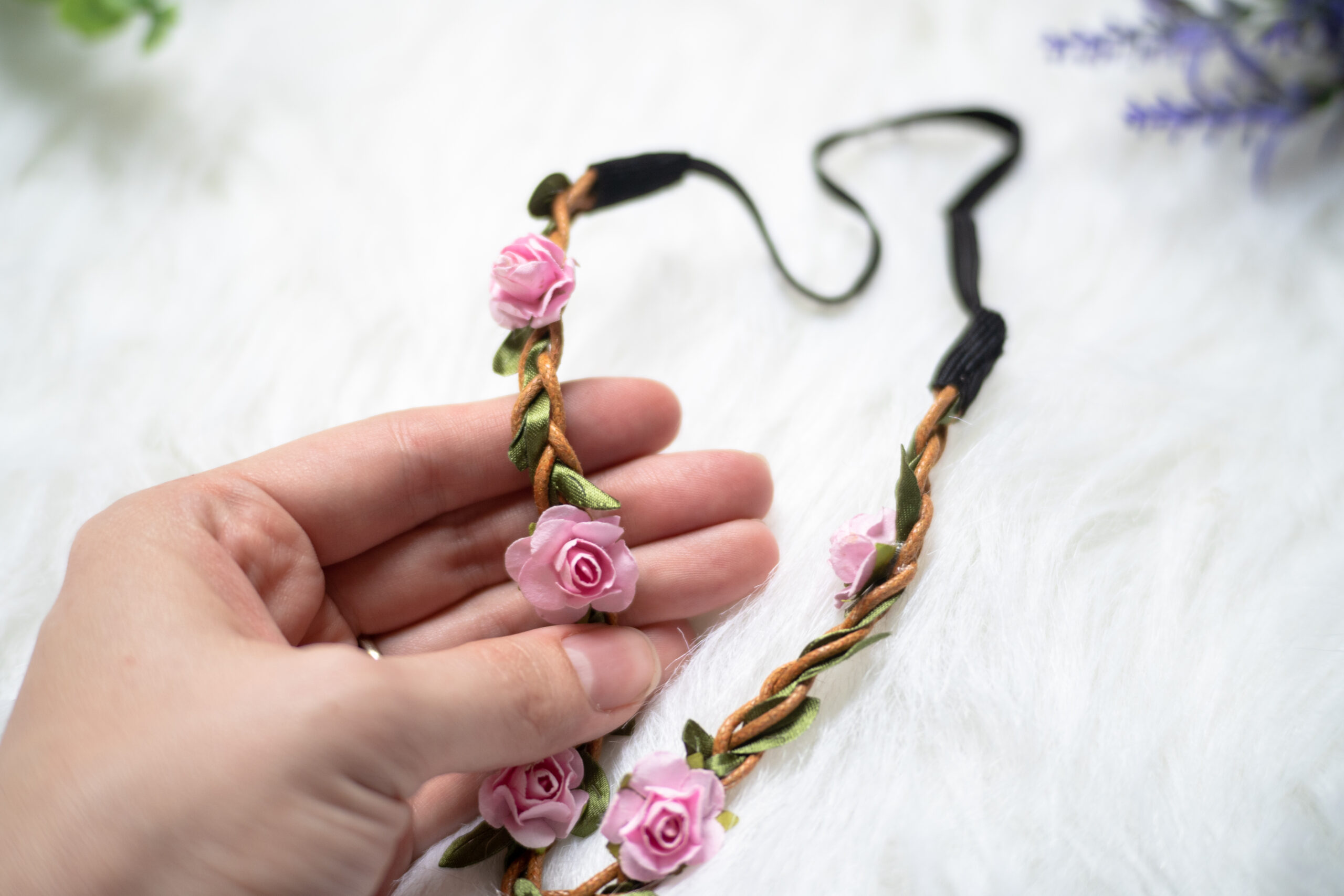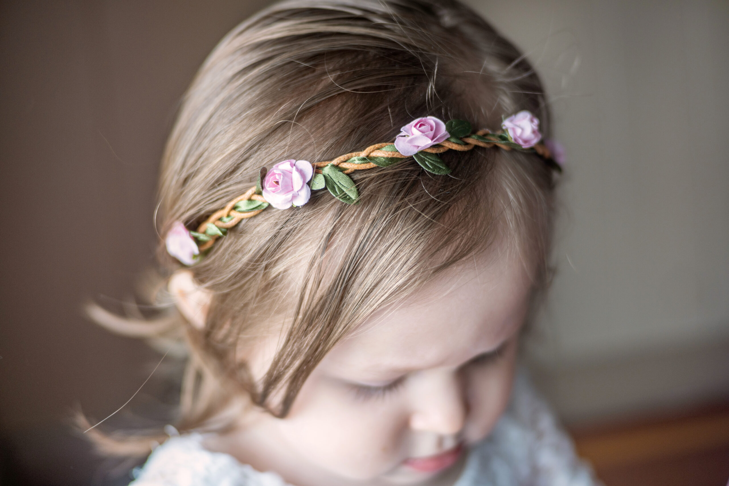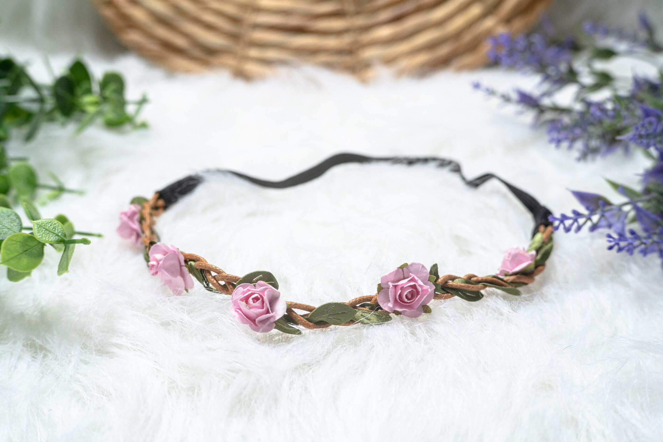 Our elegant floral crowns are made with faux flowers. They are the perfect accessory for flower girls or outdoor photoshoots.